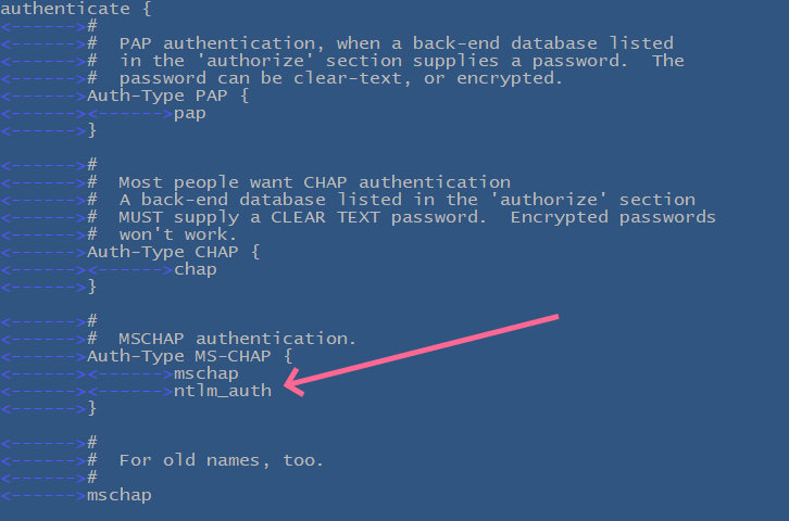DEFAULT Auth-Type = ntlm_auth